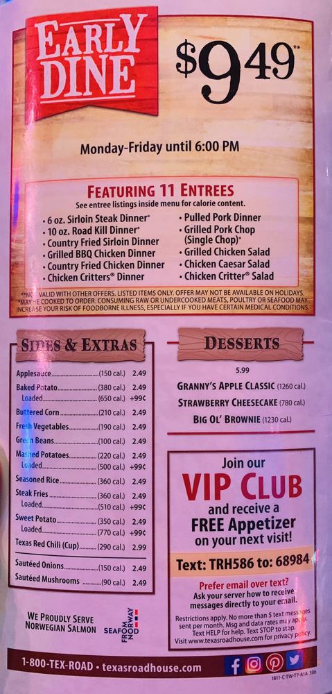 Introducing the Menu at Texas Roadhouse - 101 Outlet Pkwy